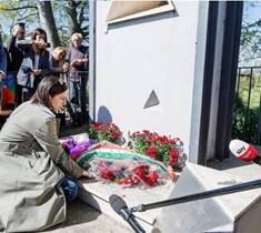 Elly Schlein rende omaggio alla stele di Matteotti a Riano