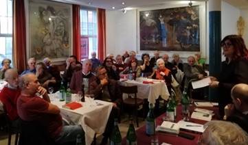 Il Coopi di Zurigo durante la presentazione del volume bilingue di Cìnkali di Dario Robbiani (1939-2009) con Renzo Balmelli, Gigi Bettoli, Giangi Cretti, Toni Ricciardi, Lara Robbiani, Anita Thanei e Vincenzo Todisco il 14/12/2019.
